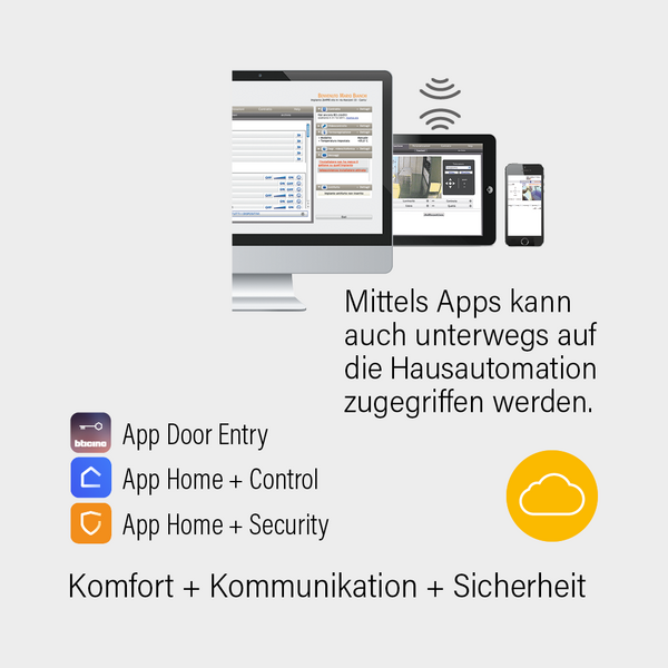 Mit der App Home + Control können verschiedene Hausautomationssysteme wie „MyHome“ und „with Netatmo“ sowie smarte Thermostate von Bticino und Netatmo gesteuert werden. So können beispielsweise die Steuerung und Verwaltung von Beleuchtung, Beschattung und Temperatur vorgenommen werden. Zudem können verschiedene Szenarien und Lichtstimmungen abgerufen werden, wie zum Beispiel beim Aufwachen, beim Verlassen des Hauses oder beim Fernsehen – und sogar eigene Szenarien erstellt werden. Darüber hinaus hilft die Energieverbrauchsanzeige, die Stromkosten im Überblick zu behalten.​